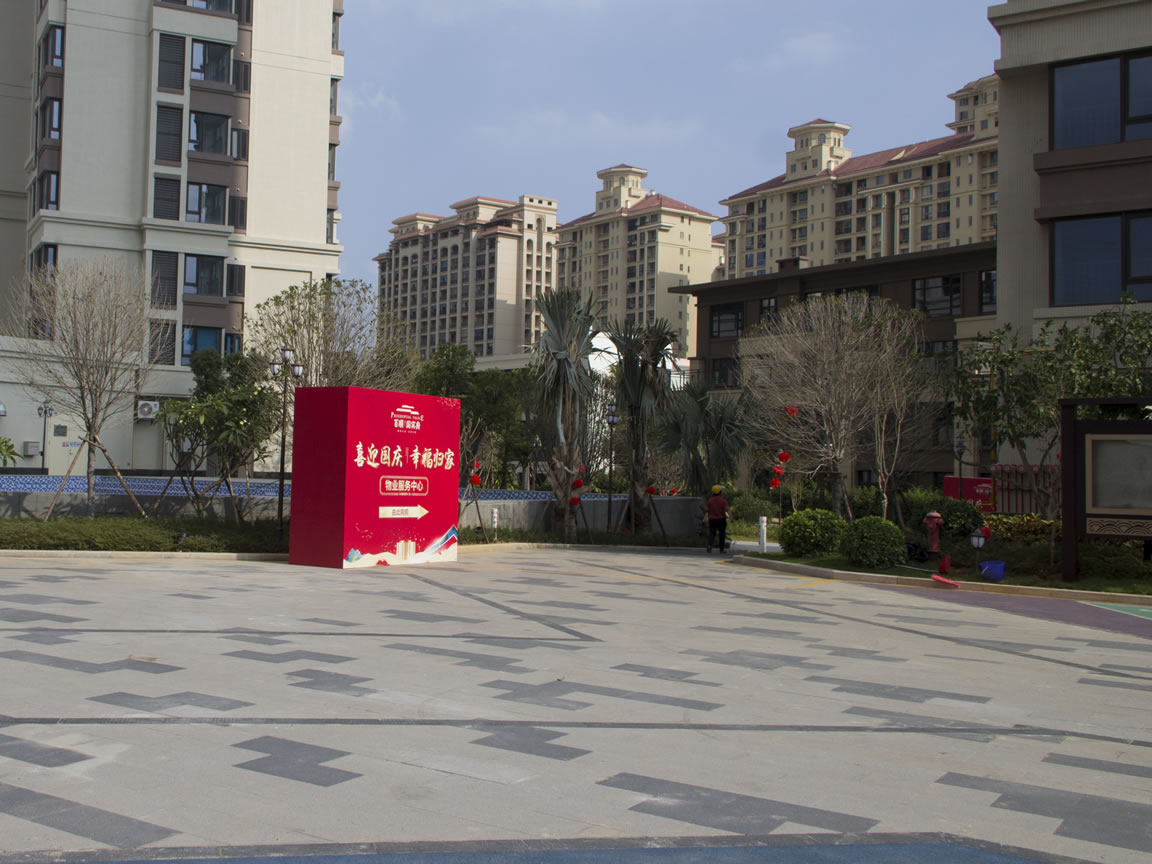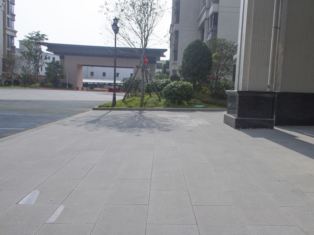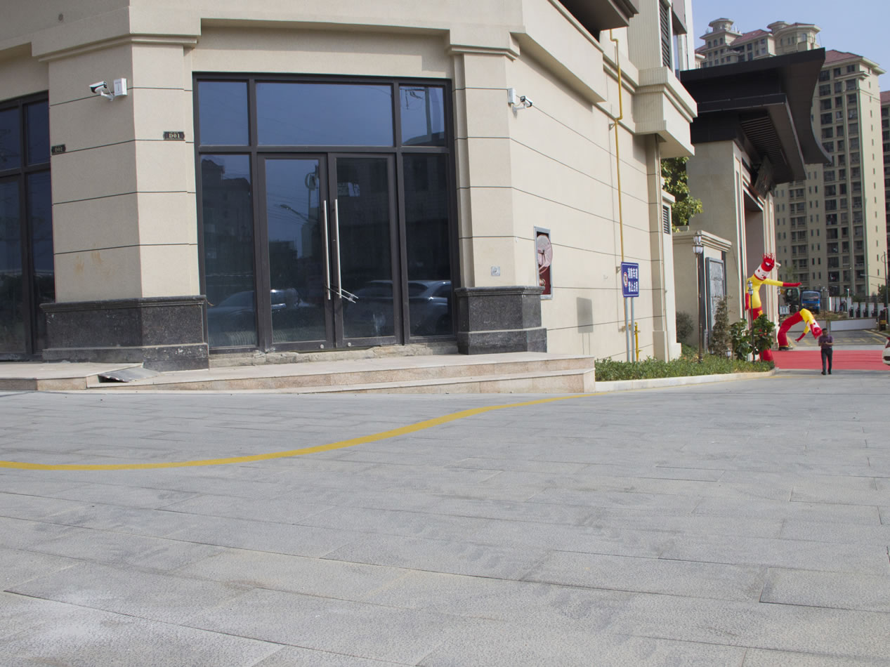 小區(qū)園林使用協(xié)進地鋪石鋪貼,樓房外立面使用協(xié)進彩碼磚鋪貼,