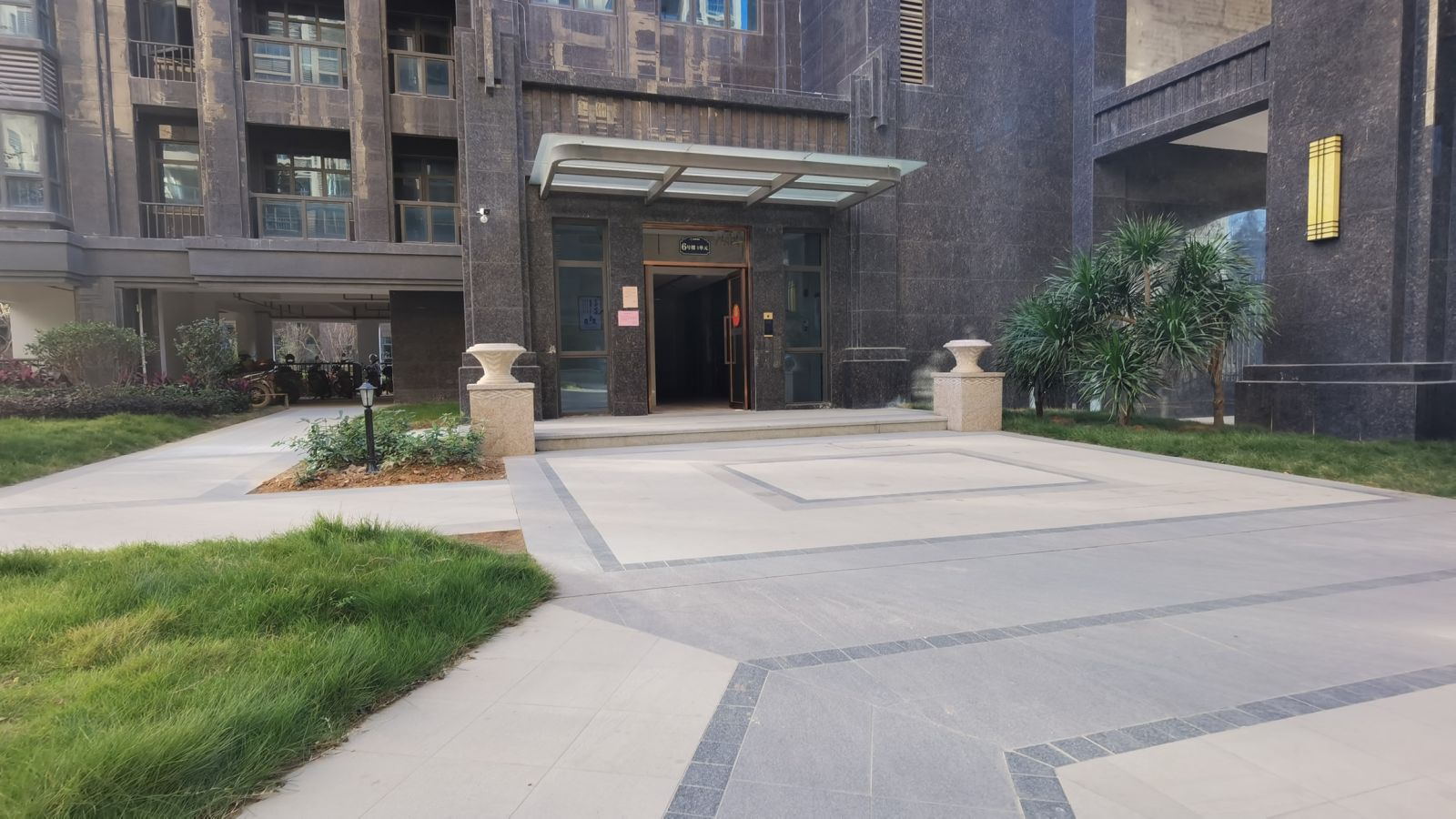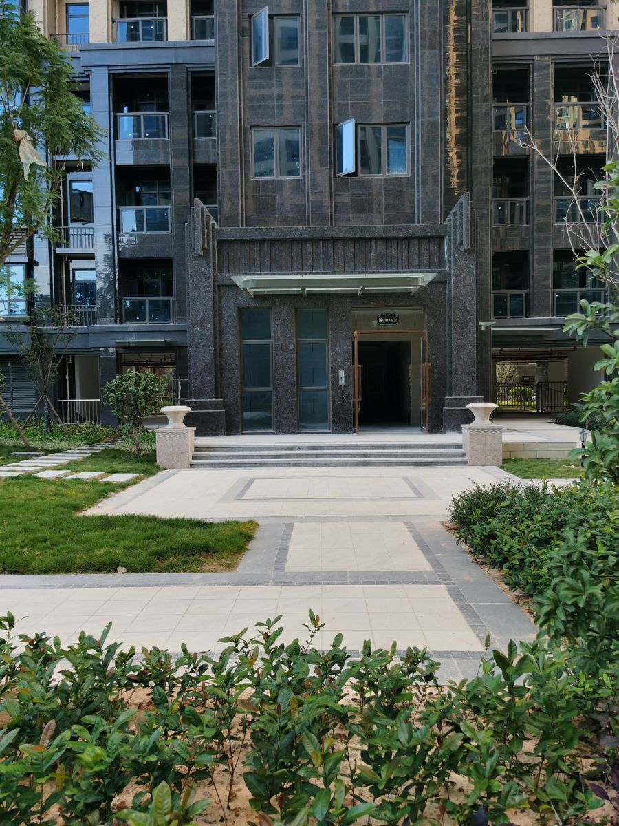 裙樓部分使用600*900仿石薄板與真石材搭配鋪貼,效果逼真。