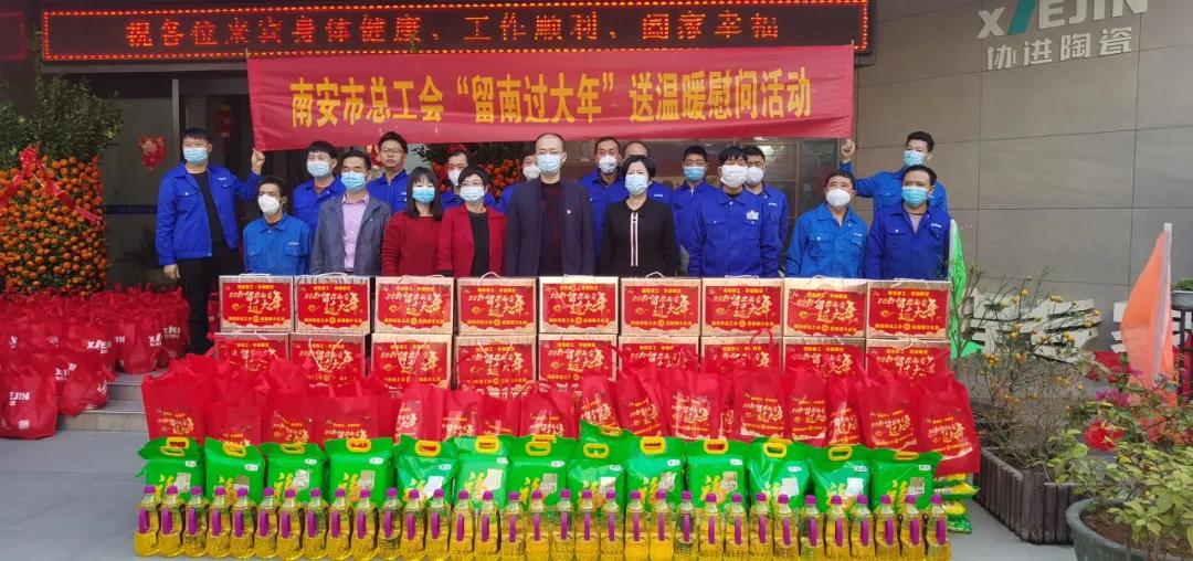 臘月時節(jié),暖風徐徐。南安市紀委監(jiān)委駐市總工會機關紀檢監(jiān)察組副組長姚添丁、南安市總工會組織部負責人陳雅婷帶隊,在官橋鎮(zhèn)黨委二級主任科員、鎮(zhèn)總工會主席李彩芳,官橋鎮(zhèn)人力資源和社會保障所所長、鎮(zhèn)總工會副主席蔡偉忠等人的陪同下,蒞臨協(xié)進公司走訪慰問留南過年的外來員工,為員工們送來了黨委、政府、工會娘家人的新春關懷和溫暖禮包。