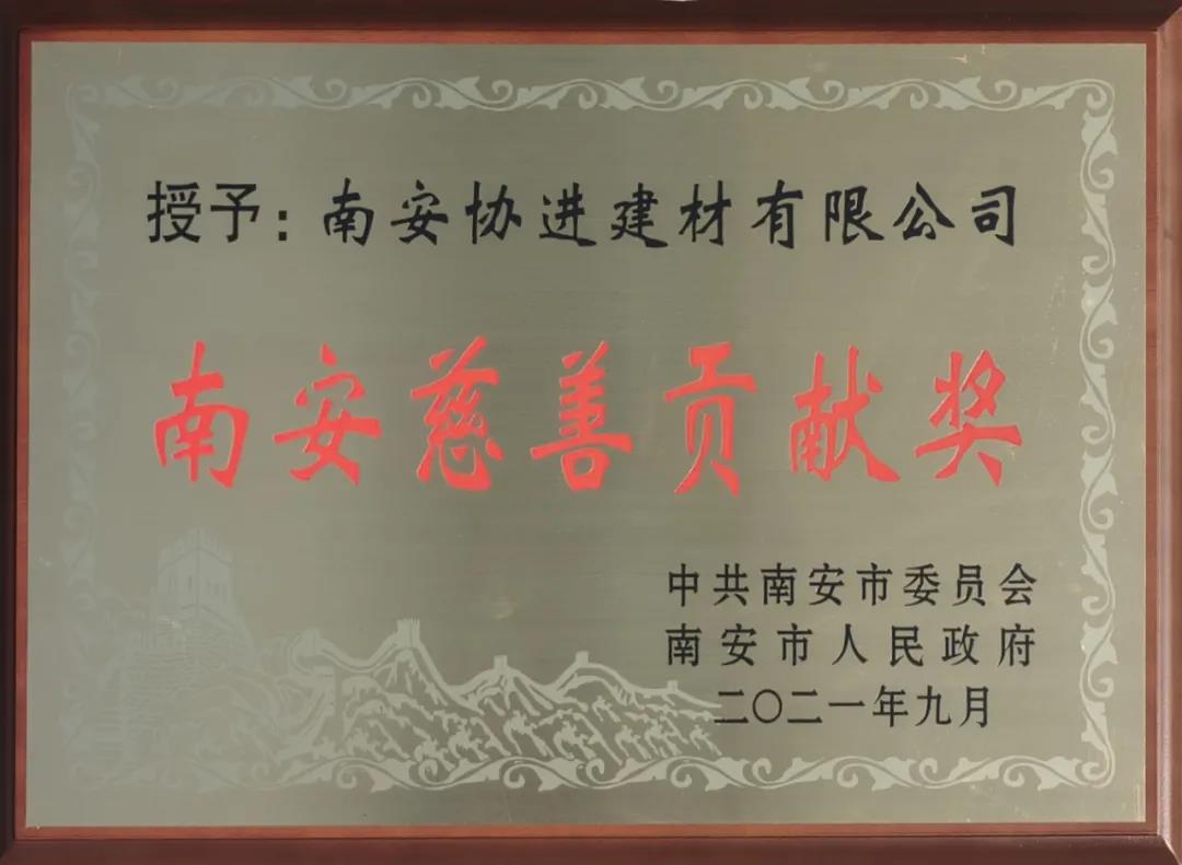 公司倡導“協(xié)進一家親,生活更開心”的企業(yè)文化理念,在發(fā)展的同時不忘回報社會,通過南安市慈善總會、官橋鎮(zhèn)政府、官橋商會以及其他渠道積極、熱心參與教育、醫(yī)療(抗疫)、關愛老人、扶貧濟困、文化體育等各項社會公益事業(yè)。榮獲南安市委、市政府頒發(fā)“南安慈善貢獻獎”。