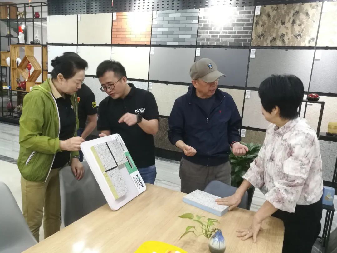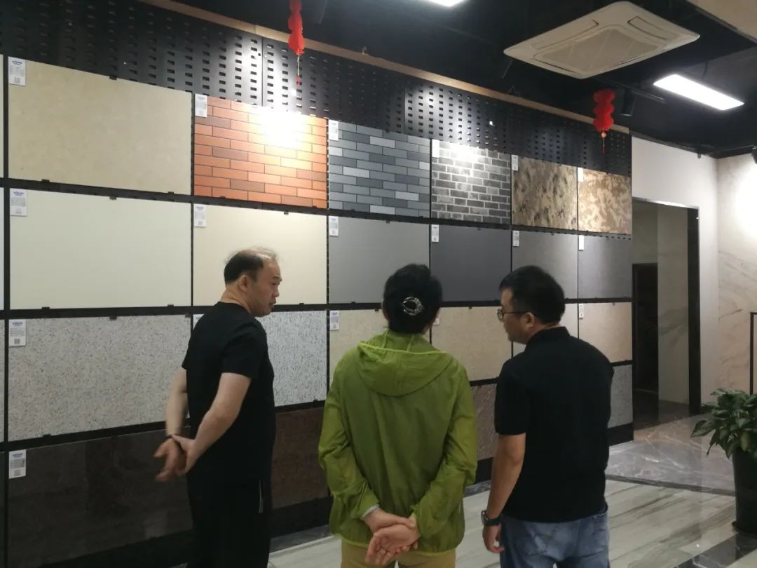 于會長等考察組一行在南安市政協(xié)委員、南安協(xié)進公司總經(jīng)理王少華的介紹下一邊了解協(xié)進陶瓷30年來的發(fā)展歷程,一邊饒有興趣地參觀了產(chǎn)品展廳,對協(xié)進研發(fā)生產(chǎn)的一系列大規(guī)格薄板、大板、陶瓷薄板復合保溫一體板、地鋪石等綠色節(jié)能新產(chǎn)品給予肯定。在隨后的座談中,雙方就諸多產(chǎn)品在泛家居領(lǐng)域的創(chuàng)新與運用進行了詳細深入的交流探討。