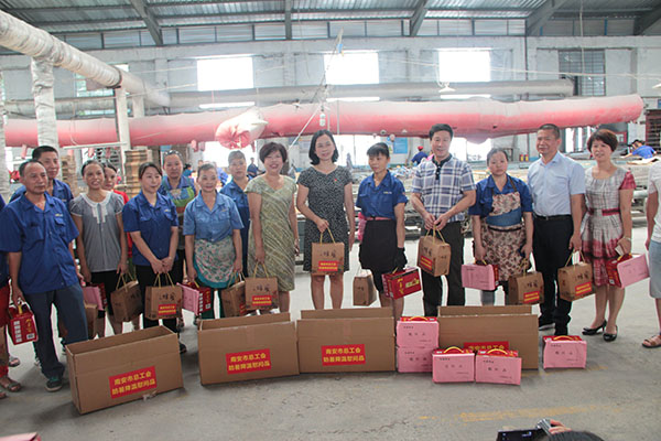 7月11日上午,南安市總工會(huì)、官橋鎮(zhèn)總工會(huì)領(lǐng)導(dǎo)蒞臨協(xié)進(jìn)公司,對(duì)一線員工表達(dá)了親切的關(guān)心和慰問(wèn),并特意送來(lái)一批防暑降溫食品和飲料慰問(wèn)全體員工,我們向各位領(lǐng)導(dǎo)表示感謝!并感謝黨和政府對(duì)我們的關(guān)心和對(duì)企業(yè)的支持!