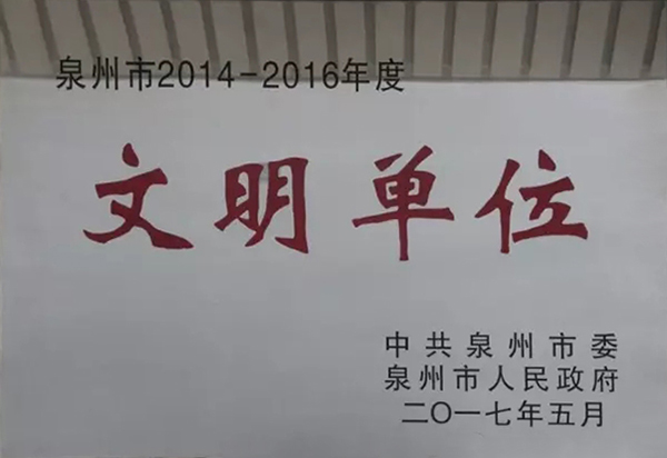 協(xié)進(jìn)公司獲評泉州市2014—2016年度文明單位